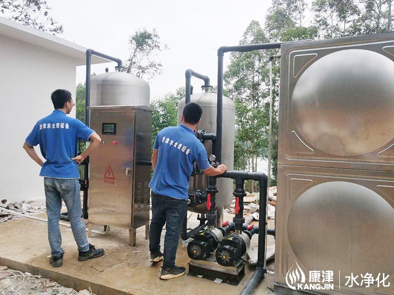 壓力式凈水設備是利用一種或幾種過濾介質,在一定的壓力下把濁度較高的水通過一定厚度的粒狀或非粒材料,從而有效的除去懸浮雜質使水澄清的過程,濾料是無煙煤、石英砂、等材料為床層,各介質的相對密度和粒徑應有一定差別,由無煙煤與石英砂組成的雙層濾料,所用的無煙煤相對密度為1.4—1.6,粒徑為0.8—1.8mm,石英砂相對密度為2.6—2.65,粒徑為0.5—1.2mm床層的頂層由最輕和最粗品級的材料組成。其原理為按深度過濾,水中較大的顆粒在頂層被去除,較小的顆粒在過濾器介質的較深處被去除。