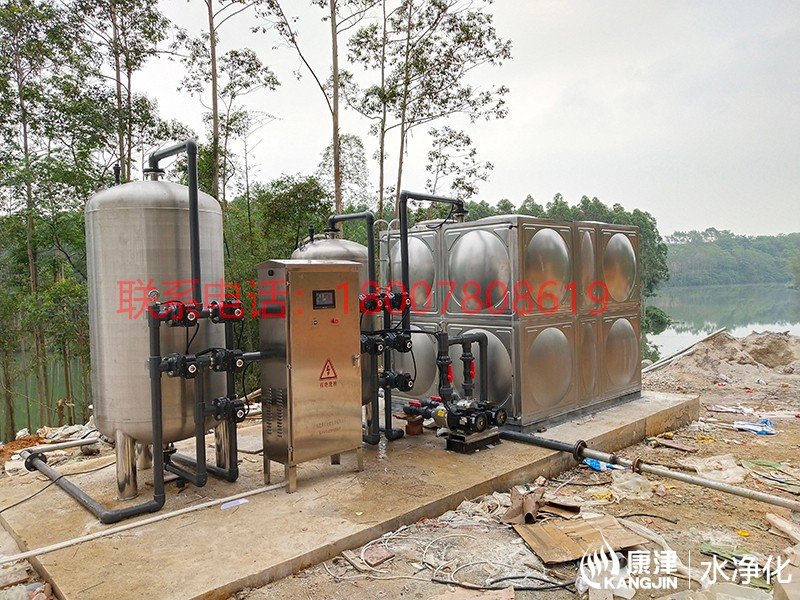 工藝流程:河水-石英砂過濾器-凈水箱-二氧化氯消毒-加壓泵-高位水塔