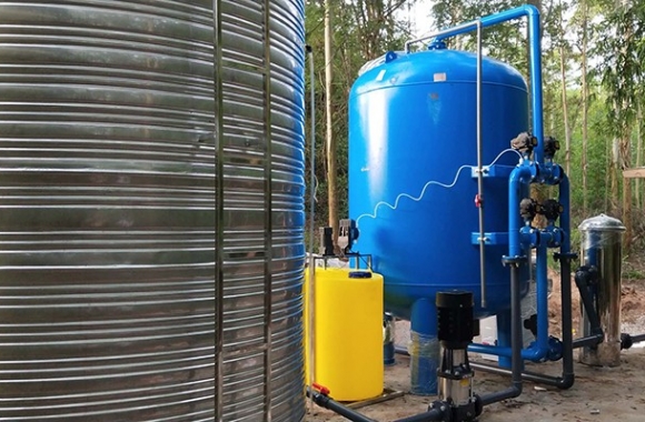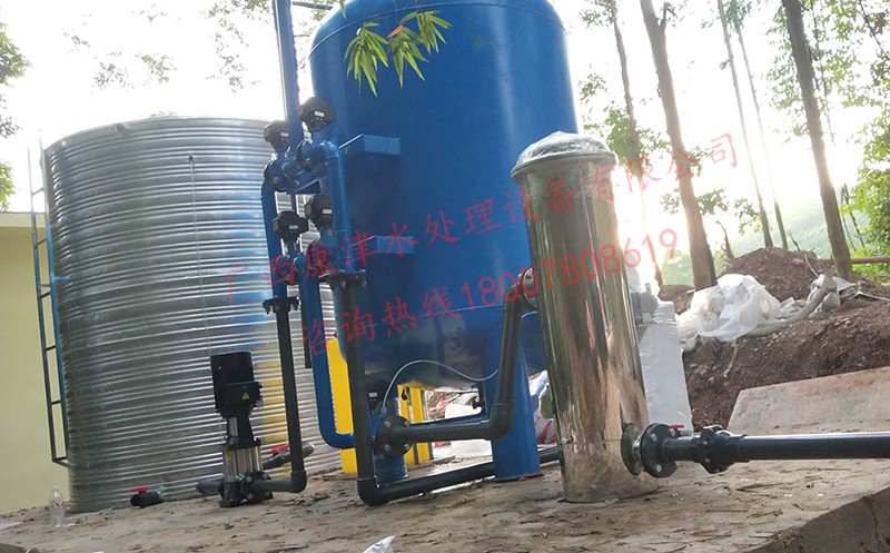 項(xiàng)目名稱:蘇圩河水凈化工程 設(shè)備名稱:30噸壓力式凈水設(shè)備 工藝流程:河水-原水箱-石英砂過濾器-精密過濾器-二氧化氯消毒-加壓泵-高位水塔 ...