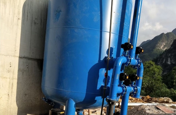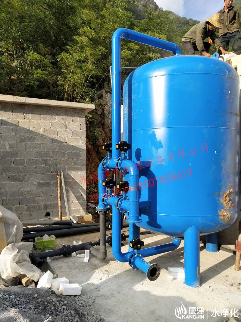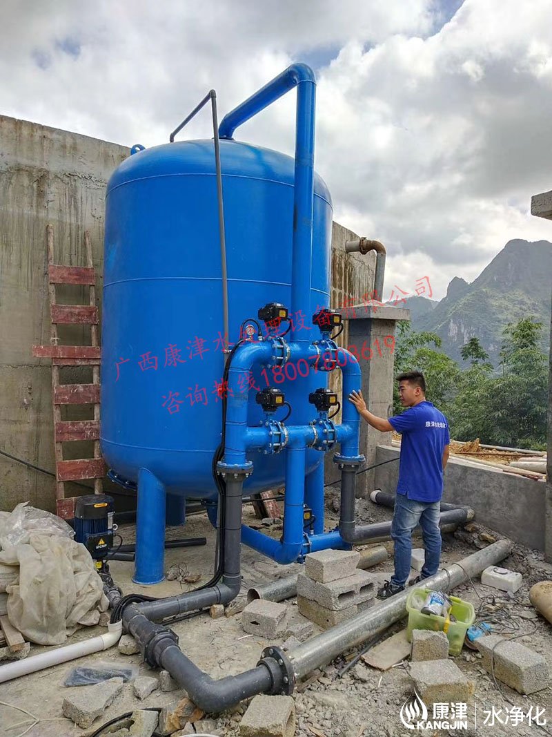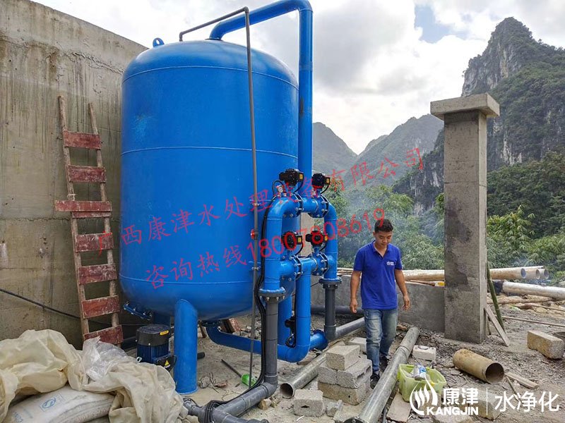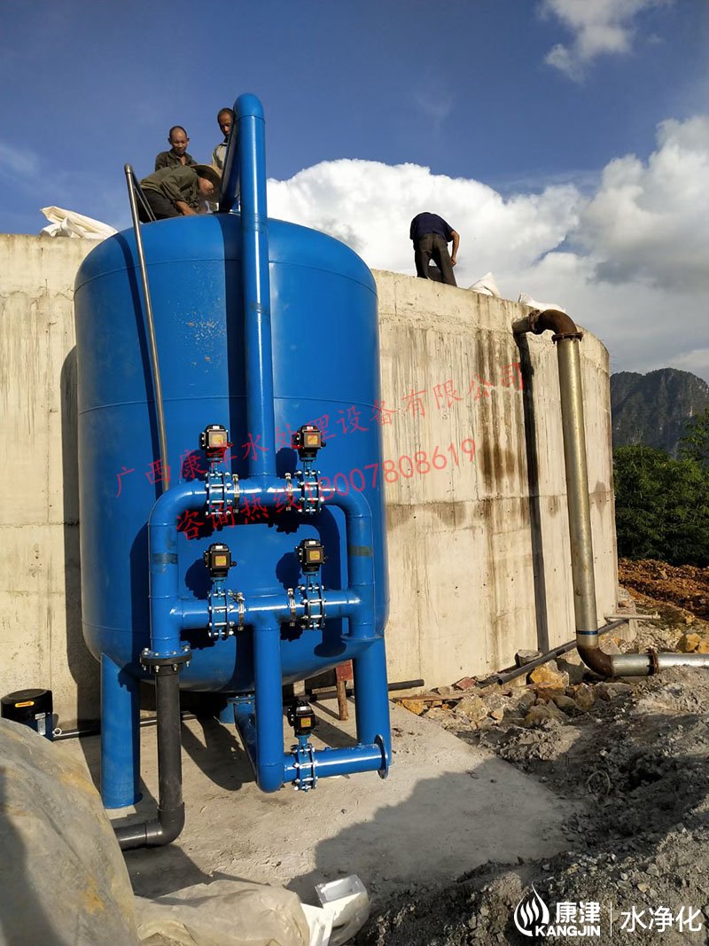 項目名稱:百色市凌云縣伶站瑤族鄉(xiāng)40噸壓力式一體化凈水設(shè)備 設(shè)備名稱:40噸壓力式一體化凈水設(shè)備 工藝流程:河水-絮凝加藥-石英砂過濾器-二氧化氯加藥器-凈水箱-各用水點...