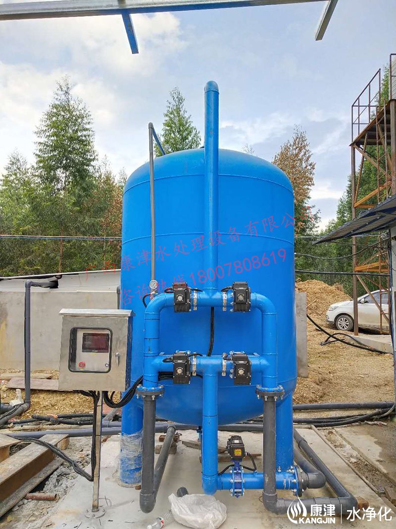 設(shè)備是壓力式的,其原理是當(dāng)原水自上而下通過濾料時(shí),水中懸浮物由于吸附和機(jī)械阻流作用被濾層表面截留下來;當(dāng)水流進(jìn)濾層中間時(shí),由于濾料層中的砂粒排列的更緊密,使水中微粒有更多的機(jī)會(huì)與砂粒碰撞,于是水中凝絮物、懸浮物和砂粒表面相互粘附,水中雜質(zhì)截留在濾料層中,從而得到澄清的水質(zhì)。經(jīng)過濾后的出水懸浮物可在3毫克/升以下。