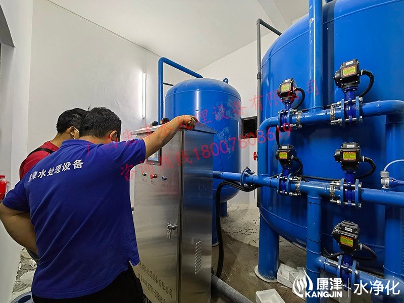 項目名稱:貴港旺嶺村地下水凈化工程 設備名稱:30噸壓力式凈水設備 工藝流程:河水-石英砂過濾器(二級過濾)-二氧化氯消毒...