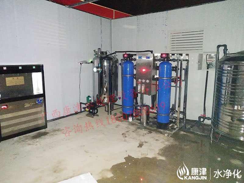 工藝流程:原水箱-原水泵-石英砂過濾器-活性炭過濾器-精密過濾器-反滲透設備-凈水箱-變頻供水-直飲機