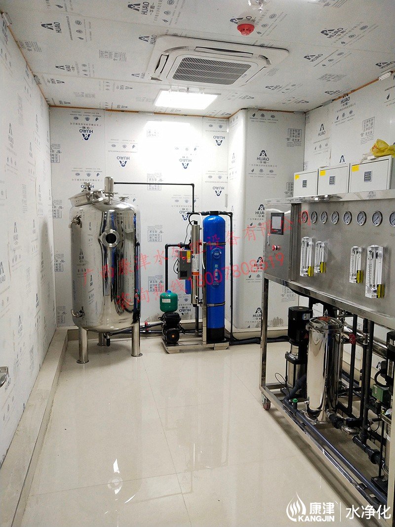工藝流程:原水-原水泵-石英砂過(guò)濾器-活性炭過(guò)濾器-反滲透設(shè)備-精密過(guò)濾器-軟化水設(shè)備-凈水箱-變頻供水回水殺菌系統(tǒng)-用水點(diǎn)