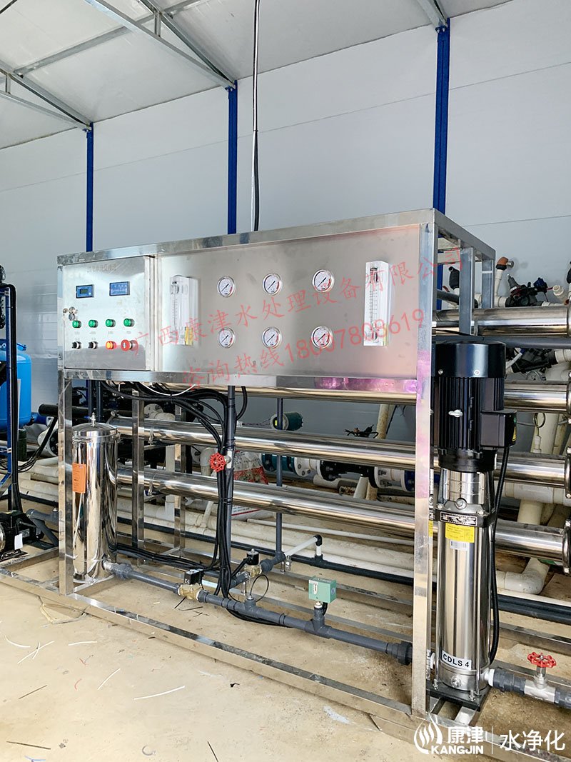 工藝流程:井水-增壓泵-石英砂過濾器-活性炭過濾器-精密過濾器-增壓泵-立式增壓泵-反滲透設備-凈水箱-變頻供水
