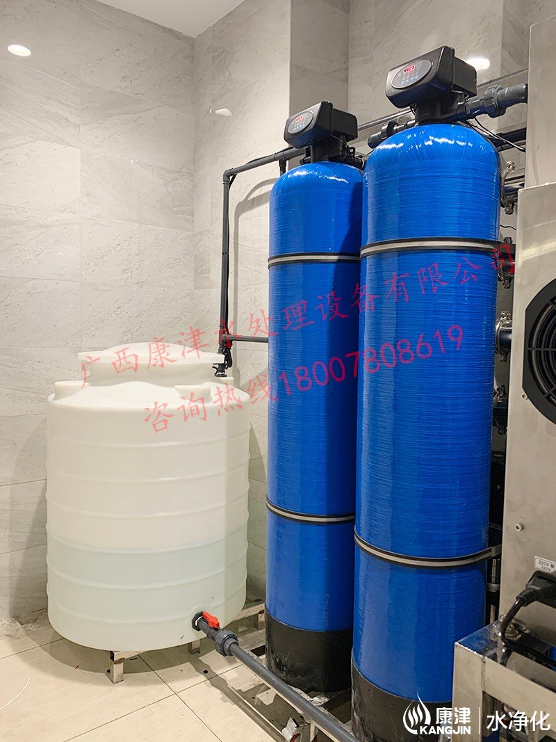工藝流程:原水箱-原水泵-石英砂過濾器-活性炭過濾器-樹脂過濾器-精密過濾器-反滲透設(shè)備-軟水鹽-凈水箱-變頻供水回水殺菌系統(tǒng)-用水點