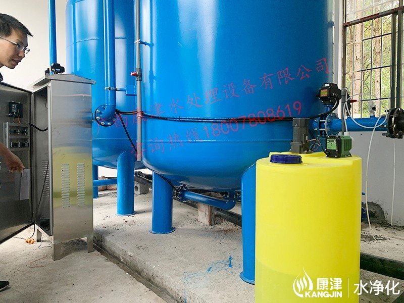 工藝流程:山泉水-二氧化氯加藥器-絮凝投加器-石英砂過濾器-用水點