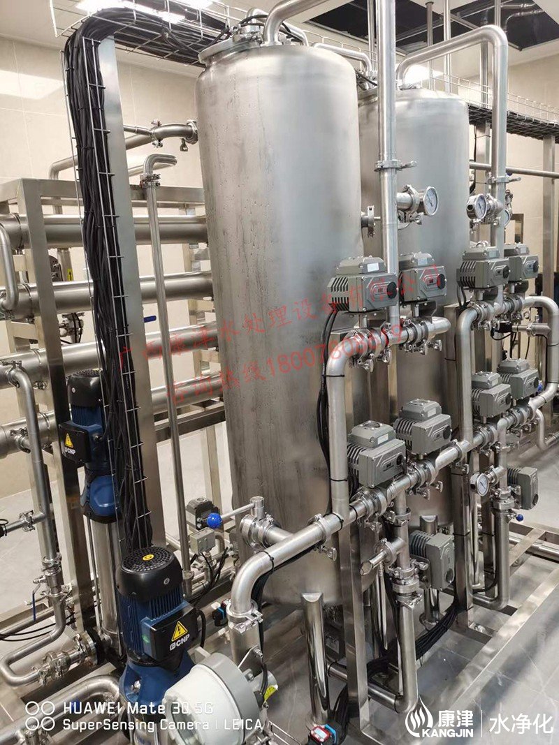 工藝流程:原水箱-原水泵-石英砂過濾器-活性炭過濾器-精密過濾器-紫外線殺菌器-增壓泵-反滲透膜組-加藥系統-無菌水箱-紫外線消毒殺菌器-除菌過濾器-變頻恒壓供水系統-用水點